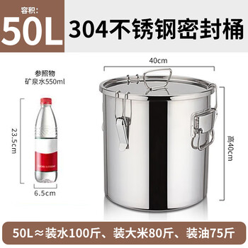 全适304加厚不锈钢密封桶牛奶桶米桶发酵桶汤锅装水米油储物桶40*40cm