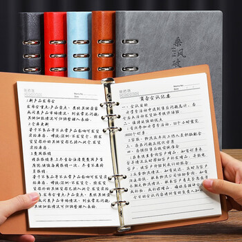 嘉然恒 活页本a5加厚笔记本本子创意励志封面商务办公文具记事本可拆卸替换内芯会议记录本可定制 黑色