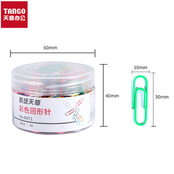 天章 (TANGO)(TANGO)3#彩色回形针160枚/筒 家庭办公室财务资料收纳多功能曲别针大促凑单 试卷分类 办公用品