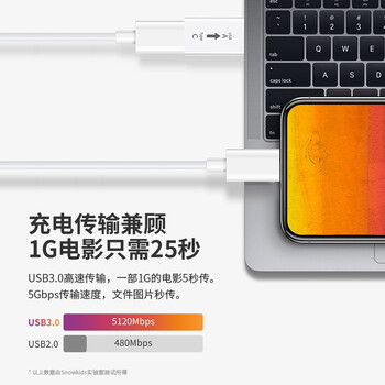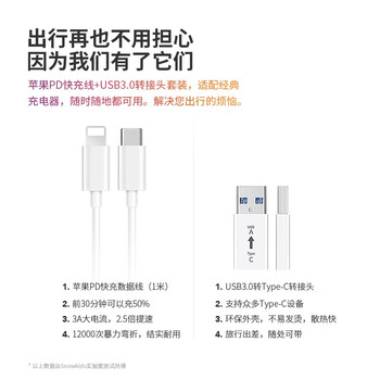 Snowkids苹果数据线PD快充加固加粗不伤机iphone14/13/12/11/xsmas/xr充电线转换头转接头Type-C转USB转接