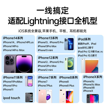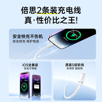 倍思苹果快充数据线2.4A充电线适用iPhone14/13/12Pro Max/XR/Xs/11/8手机ipad平板车载1.5米【2条装】