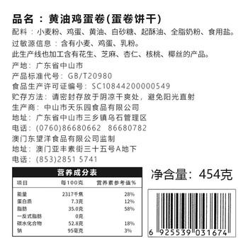 东望洋进口黄油鸡蛋卷454g新年货节礼盒伴手礼信儿童饼干糕点零食