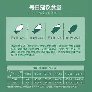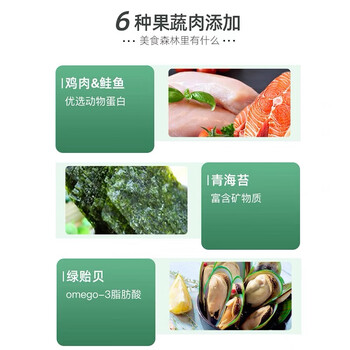 肉类及其制品(鸡肉粉、鸡油、鸡肉),大米,番薯颗粒,宠物饲料复合调味料,甜菜粕颗粒,大豆磷脂油粉,啤酒酵母粉,鲑鱼,鱼油,奇异果粉,青海苔粉,绿贻贝粉,丝兰粉,大麦苗粉,