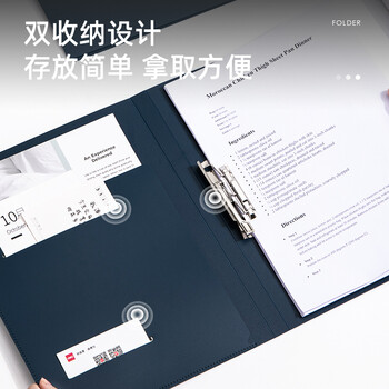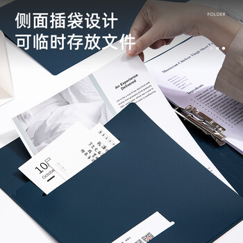 纽赛(NUSIGN)文件夹会议夹 单强力夹加厚资料报告商务板夹文件收纳办公用品 海军蓝NS181