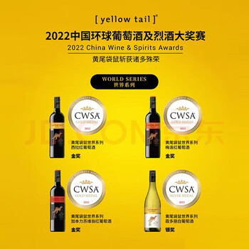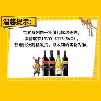 黄尾袋鼠(Yellow Tail)世界系列 西拉红葡萄酒 750ml 单瓶装 智利原瓶进口红酒