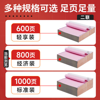 天章 (TANGO)【缺页十倍赔】天章风二联二等分撕边 针式电脑打印纸 送货单发票票据打印800页 241-2-1/2S(白红)