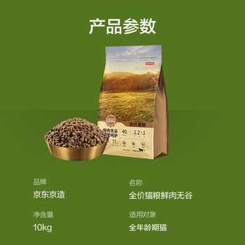 京东京造 全价无谷鲜鸡肉猫粮10kg 单一肉源低敏肠胃成猫幼猫通用