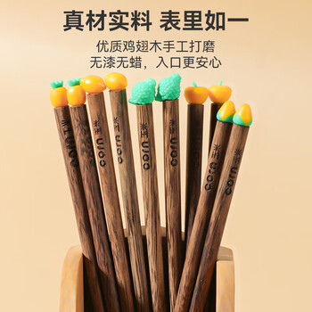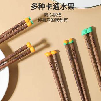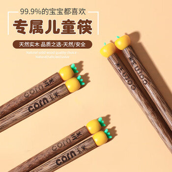 玉米(CORN)鸡翅木儿童筷子家用实木宝宝训练筷 小孩木质可爱卡通水果筷子