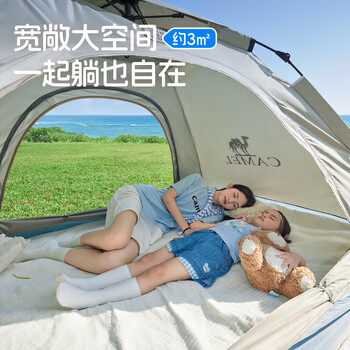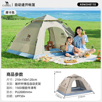 骆驼(CAMEL)户外帐篷便携式可折叠自动银胶防晒防雨野餐露营装备8110摩卡色