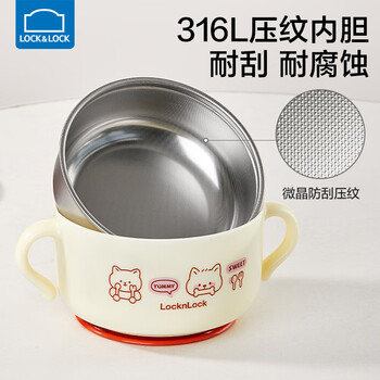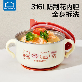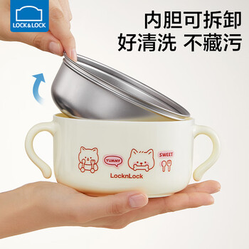 乐扣乐扣婴儿辅食碗米糊碗宝宝吃饭把手碗不锈钢儿童碗3-6-12岁小学生汤碗
