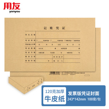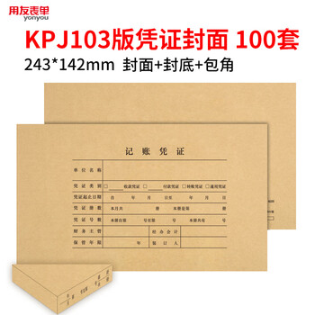 用友KPJ103发票版凭证封面包角装订包100套243*142mm增票封面财务会计记账牛皮纸封皮包角装订存档6235