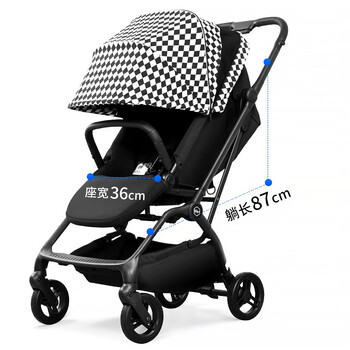 虎贝尔(HBR)婴儿推车双向高景观新生儿婴儿车可坐可躺M360夜光 黑白棋盘格