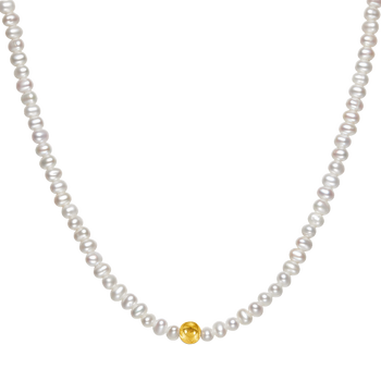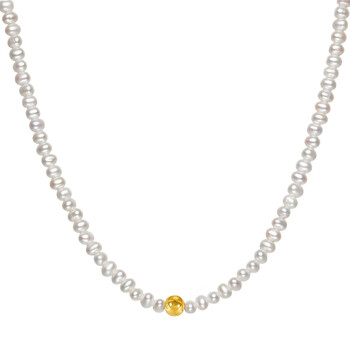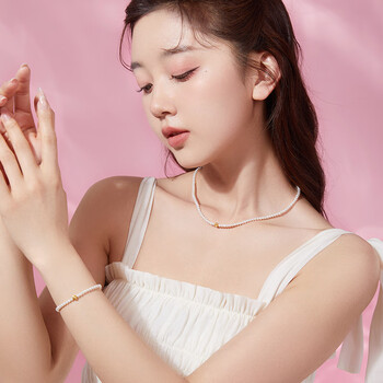 周六福黄18K金珍珠项链女年轻款生日礼物 小米珠约3.5mm 40+3cm