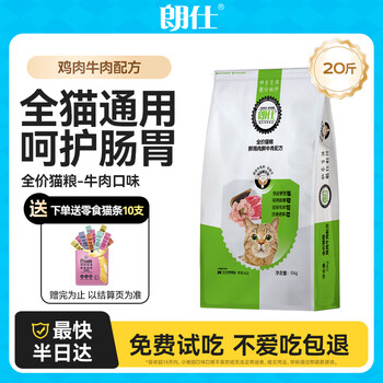 朗仕猫粮美短蓝猫幼猫成猫通用型 低盐高蛋白牛肉味猫粮10kg/20斤