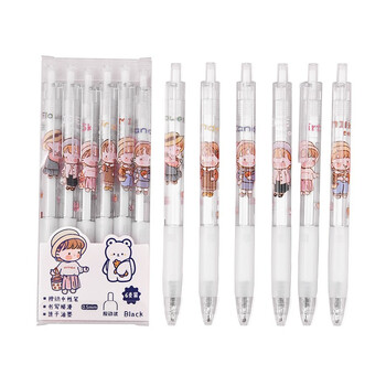 誉禾按动中性笔0.5mm黑色速干水笔卡通可爱签字笔学生中高考刷题笔书写套装6支装 2223小米粒