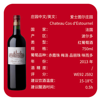 爱士图尔庄园(Chateau Cos d'Estournel)副牌干红葡萄酒2013年750ml法国1855二级庄 爱诗途古堡