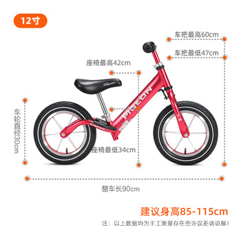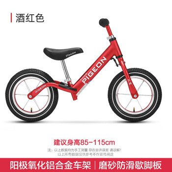 飞鸽儿童平衡车自行车滑步车男女滑行车两轮童车学步单车辐条轮酒红色