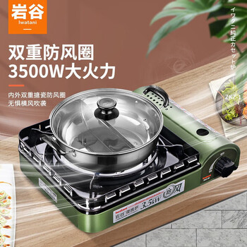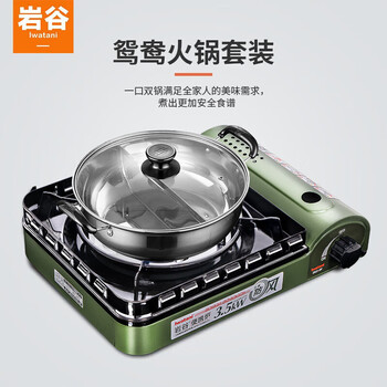 岩谷便携卡式炉 户外防风野炊燃气炉 火锅炉具 ZKZ-2F+鸳鸯锅套装