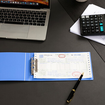 得力(deli)发票夹小号 文件夹财务支票收据单据收纳整理分类票据夹 5353 蓝色 6本装