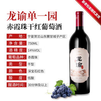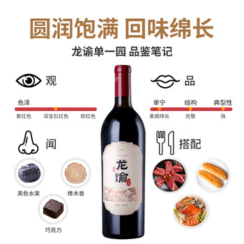 龙谕单一园 干红葡萄酒 750ml 单瓶装 赤霞珠 红酒 商务宴请 张裕集团