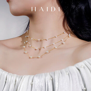 海蒂18K金4-4.5mm圆珠满天星淡水珍珠项链女年轻款送女友礼物附证书