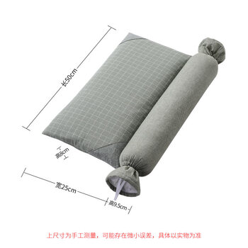 蜀国御 荞麦壳决明子圆柱糖果颈椎枕舒适睡眠成人硬枕头套枕菱格.青草绿