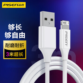 品胜苹果数据线3米加长充电线快充 适用iPhone14/13/12ProMax/Xs/XR/X/8/SE/6s手机平板车载线2.4A