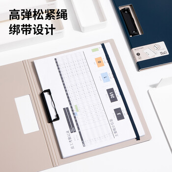 得力(deli)A4横式折页板夹会议夹 加厚文件夹彩色资料夹文件收纳合同签约办公用品 海军蓝NS178