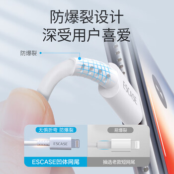 ESCASE 苹果数据线 iphone14pro/13/11/12快充电器线适用6S/7/8PlusPET防折弯 iPad Air/Pro 白