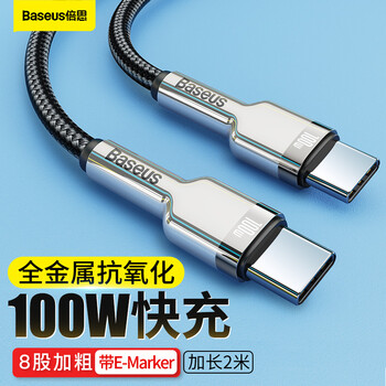 倍思 金属卡福乐系列数据线Type-C to Type-C 100W 2M黑色
