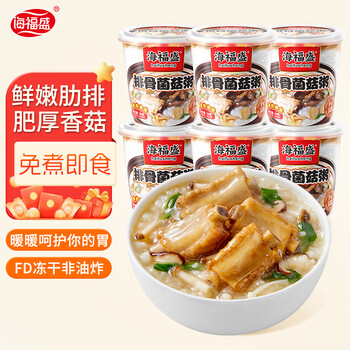 海福盛方便速食粥懒人即食早餐宵夜营养粥冻干八宝粥排骨菌菇粥38g*6杯