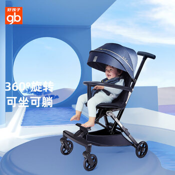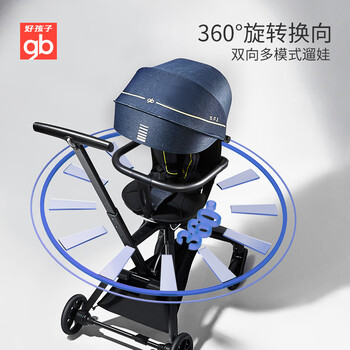 好孩子(gb)360°双向高景观溜娃婴儿推车可坐可躺可登机遛娃神器D2047 藏青