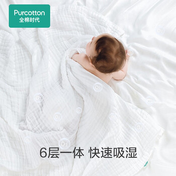 全棉时代婴儿浴巾 6层水洗纱布浴巾 宝宝纯棉浴巾礼盒 白色95*95cm