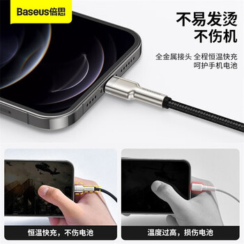 倍思 金属卡福乐系列数据线U转IP 2.4A 0.25m 黑色*1