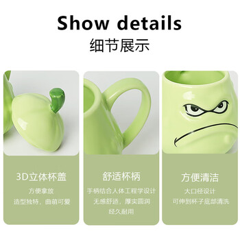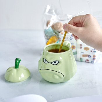 贝瑟斯马克杯窝瓜陶瓷杯 趣味搞怪创意个性礼物杯子 带盖咖啡杯喝水杯子
