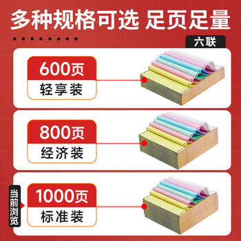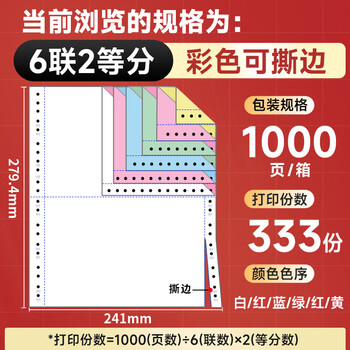 天章 (TANGO)【缺页十倍赔】天章风六联二等分撕边针式电脑打印纸送货单1000页241-6-1/2S(白红蓝绿红黄)可定制