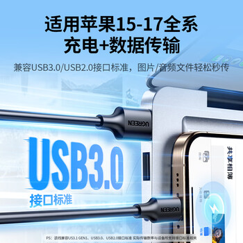 绿联USB3.0数据线Type-C充电线USB-C适用移动硬盘传输U盘苹果17/16/15华为手机平板笔记本电脑车载短线