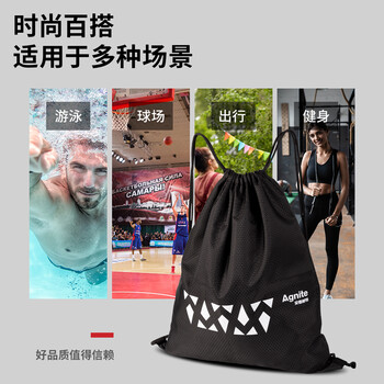 安格耐特(Agnite)束口包男女运动训练健身包双肩背包排球足球包收纳袋黑