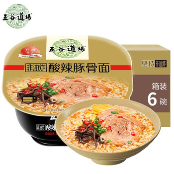 五谷道场 非油炸方便面 酸辣豚骨面118gx6碗装