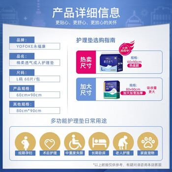 永福康成人护理垫L60片(60*90cm)婴儿老人一次性加大隔尿垫产褥垫