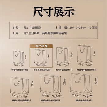 登比 牛皮纸礼品袋中号【20*10*28cm】10只装 *1