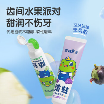 青蛙王子儿童牙膏牙刷3-12岁含氟防蛀固齿宝宝刷牙套装 水果口味50g*3