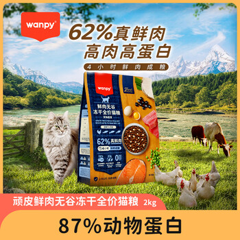 Wanpy62%鲜肉无谷冻干全价猫粮(深海盛宴)2kg