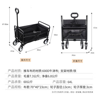 京安通 户外露营车折叠推车野营车 便携式折叠露营推车摆摊车 黑色