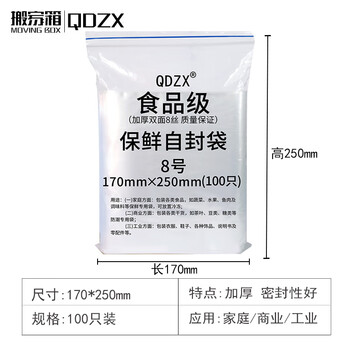 QDZX 8号 17*25cm100只自封袋封口袋食品袋保鲜袋PE袋密封袋压缩袋