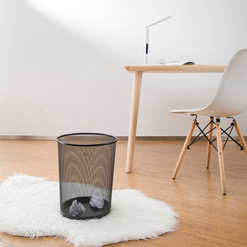 得力(deli)φ29.5cm大号金属网状圆纸篓 办公家用垃圾桶 垃圾分类 办公用品 黑色9189(5个装)【ZY】