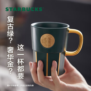星巴克(Starbucks)墨绿色女神铭牌马克杯390ml办公水杯男咖啡杯陶瓷杯子女神节礼物