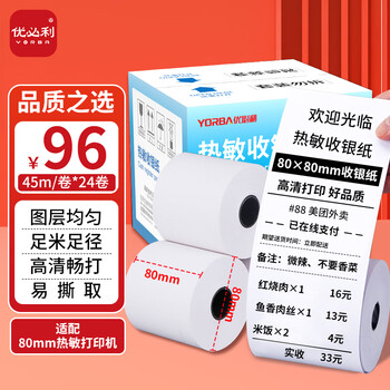 优必利 收银纸热敏纸收银打印纸 超市小票美团外卖打印纸80*80mm/24卷 7208