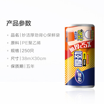 妙洁 厚劲系列背心式保鲜袋大号250只