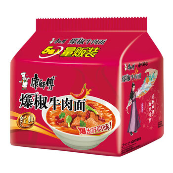 康师傅 方便面 经典爆椒牛肉 泡面袋装速食 五连包 1包